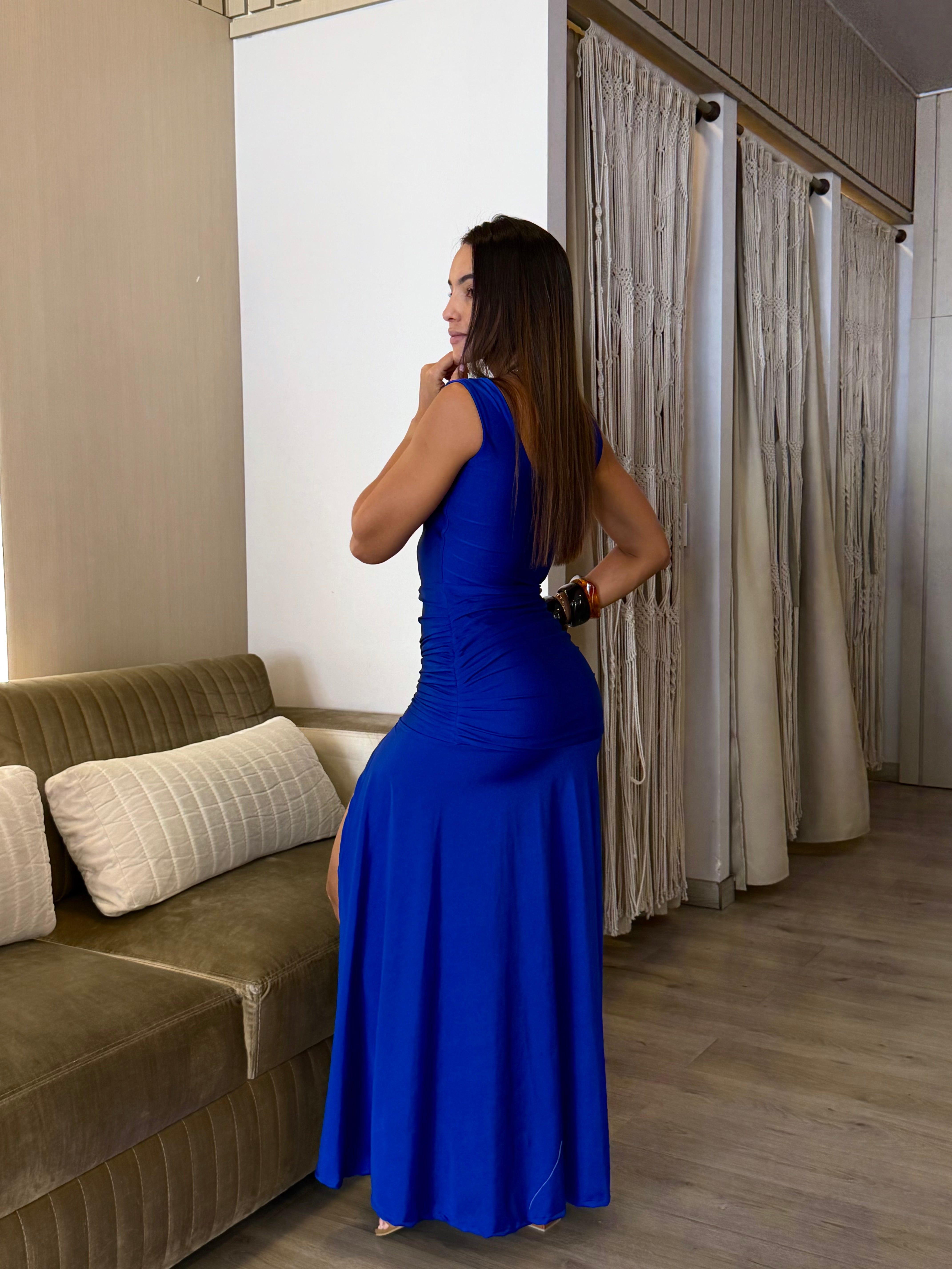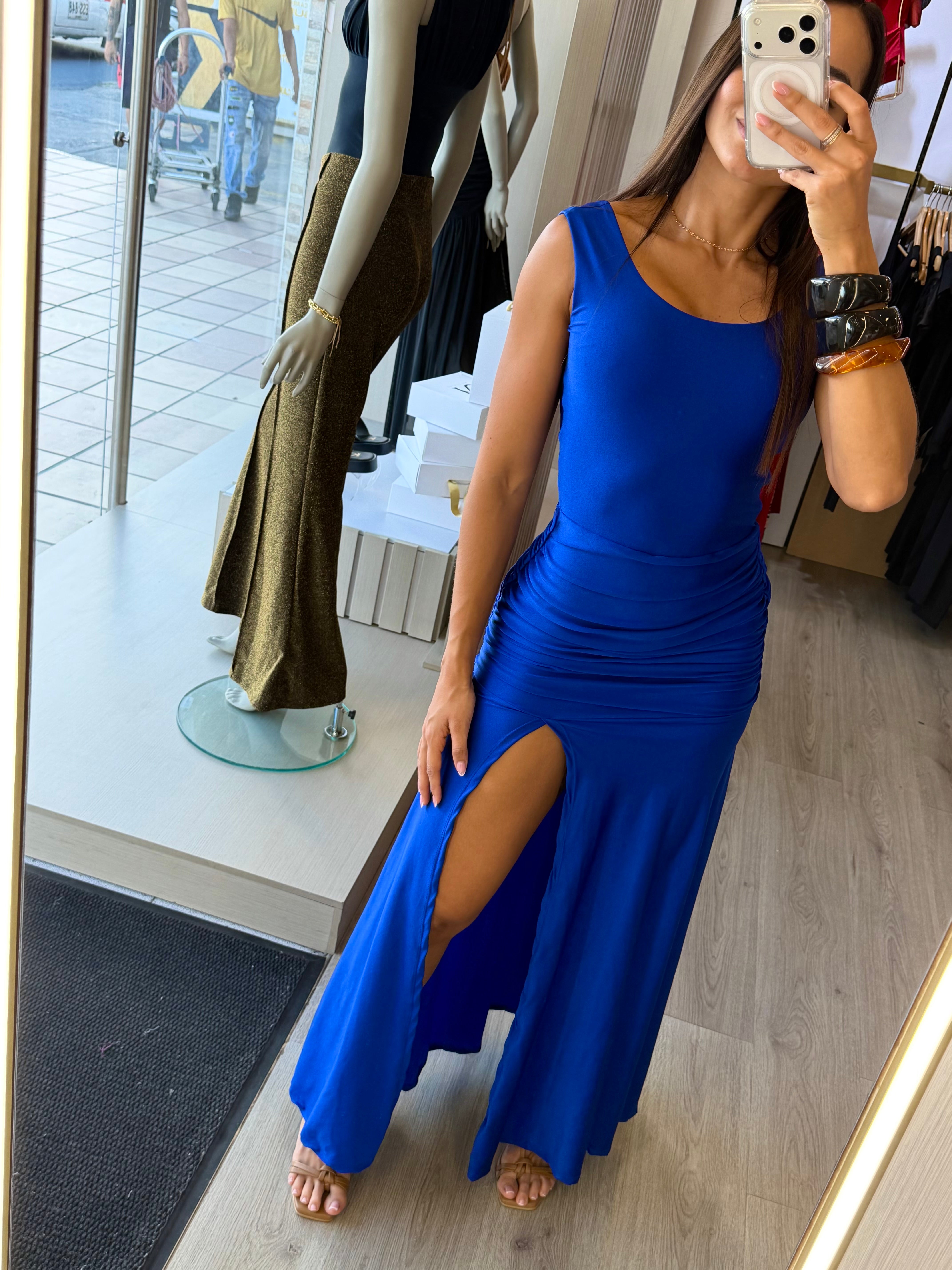 Diseñado para esculpir tu figura con un minimalismo audaz. Su silueta fluida se rompe con una apertura lateral dramatica, fusionando sofisticacion con una energia moderna irresistible. Una pieza iconica para la mujer que busca dominar la escena con elegancia absoluta.